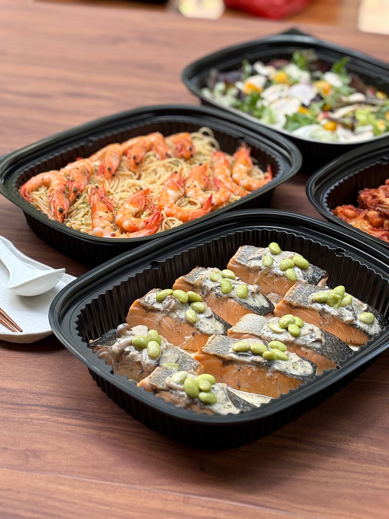 Indulge in Fortune Food’s newest crowd-pleaser – a luxurious 5-course spread starring fresh Grilled Salmon Fillet drizzled with fragrant herb sauce and juicy Spaghetti Prawn Aglio Olio tossed with plump prawns. Start with golden Crispy Chicken Drummets, sip velvety Fresh Champignon Mushroom Soup made from real Swiss brown mushrooms, and refresh with crisp Thai Mango Chicken Salad in nutty Japanese sesame dressing. Perfect for birthdays, corporate lunches, or cozy gatherings – everything arrives hot, beautifully plated, zero cooking, zero cleanup. Just open & enjoy!