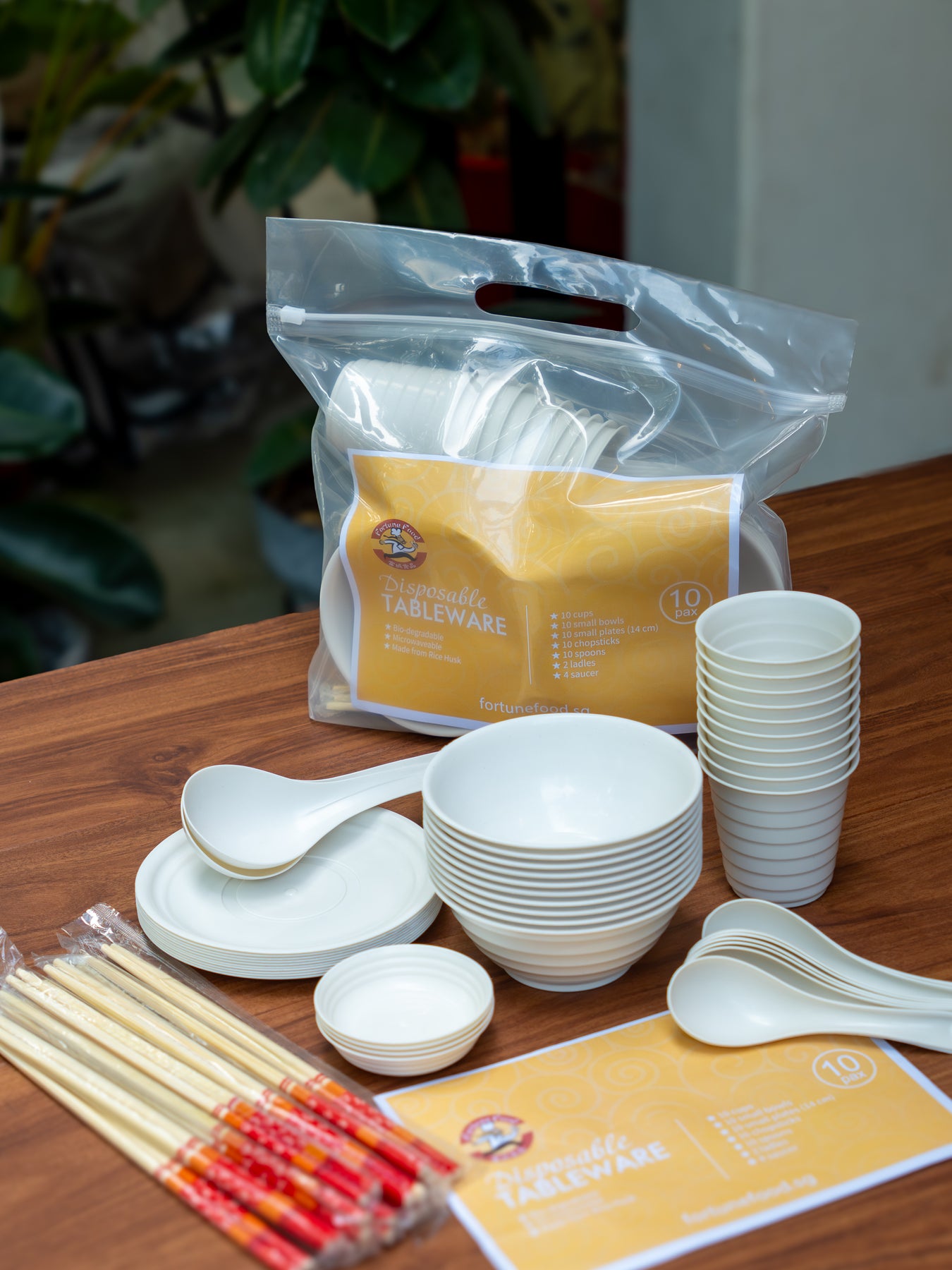 Includes: 10 Cups, 10 Small Bowls, 10 Small Plates (14cm), 10 Chopsticks, 10 Spoons, 2 Ladels, 4 Saucer